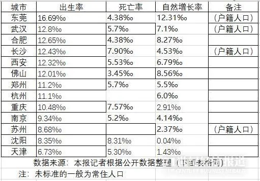 新一線城市2019年人口出生率、死亡率、自然增長率一覽